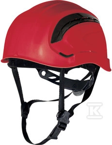 Hełm ochronny z abs, w stylu górskim, wentylowany, z regulacją rotor, pasek podbródkowy z 3 punktami mocowania, mm*, +50°c/-20°c* czerwony regulowany o numerze katalogowym  GRAWIROFL w kategorii Hełmy budowlane, Ochrona głowy. Produkt wyprodukowany przez markę DELTA PLUS.