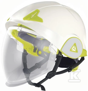 Hełm ochronny z podwójną skorupą ze zintegrowaną podnoszoną osłoną biały regulowany o numerze katalogowym  ONYX2BJ w kategorii Hełmy budowlane, Ochrona głowy. Produkt wyprodukowany przez markę DELTA PLUS.