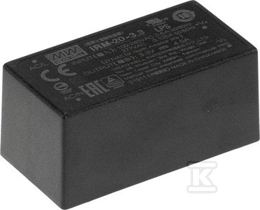 Moduł AC/DC 20W 24V 0.92A IRM-20-24 o numerze katalogowym IRM-20-24 w kategorii Przetwornice AC/DC i DC/DC, Zasilacze. Produkt wyprodukowany przez markę MEAN WELL.