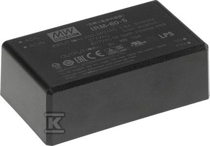 Moduł AC/DC 60W 12V 5A IRM-60-12ST o numerze katalogowym IRM-60-12ST w kategorii Przetwornice AC/DC i DC/DC, Zasilacze. Produkt wyprodukowany przez markę MEAN WELL.