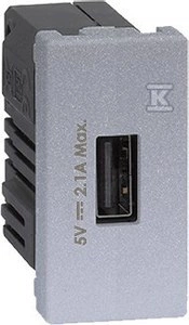 USB ładowarka K45 (45x22,5) gniazdo typ A 5V/2,1A, aluminium, CONNECT o numerze katalogowym  K126D/8 w kategorii Płytki modułowe systemu 45X45, Osprzęt biurowy, akcesoria. Produkt wyprodukowany przez markę KONTAKT-SIMON, seria CONNECT.