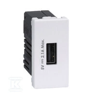 USB ładowarka K45 (45x22,5) gniazdo typ A 5V/2,1A, czysta biel, CONNECT o numerze katalogowym K126D/9 w kategorii Gniazda podtynkowe, Gniazda instalacyjne. Produkt wyprodukowany przez markę KONTAKT-SIMON, seria CONNECT.