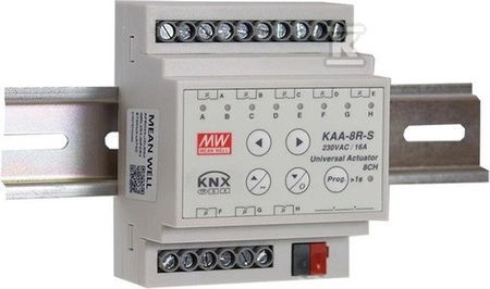 8-kanałowy aktuator KNX 8A Data Secure KAA-8R-10S o numerze katalogowym KAA-8R-10S w kategorii Przetwornice AC/DC i DC/DC, Zasilacze. Produkt wyprodukowany przez markę MEAN WELL.