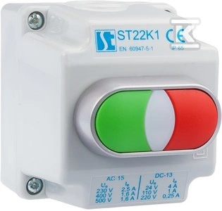 Kaseta sterownicza 1-otworowa z przyciskiem dwuklawiszowym zielono czerwonym (1NO,1NC), 1 dławnica metryczna M20 o numerze katalogowym ST22K1\21-1 w kategorii Przyciski i przełączniki sterownicze - akcesoria, Przyciski i przełączniki sterownicze. Produkt wyprodukowany przez markę SPAMEL, seria ST22.