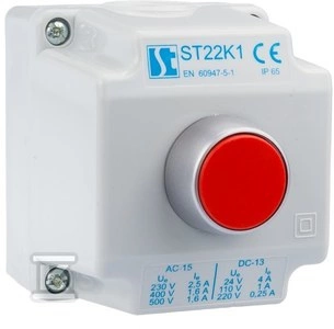 Kaseta sterownicza 1-otworowa z przyciskiem krytym czerwonym (1NC), 1 dławnica metryczna M20 o numerze katalogowym ST22K1\02-1 w kategorii Przyciski i przełączniki sterownicze - akcesoria, Przyciski i przełączniki sterownicze. Produkt wyprodukowany przez markę SPAMEL, seria ST22.