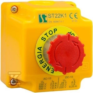 Kaseta sterownicza 1-otworowa z przyciskiem bezpieczeństwa (ryglowanym)(1NC), 1 dławnica metryczna M20 o numerze katalogowym ST22K1\05-1 w kategorii Przyciski i przełączniki sterownicze - akcesoria, Przyciski i przełączniki sterownicze. Produkt wyprodukowany przez markę SPAMEL, seria ST22.