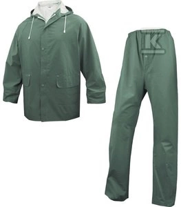 Komplet przeciwdes: Bluza + Spodnie z poliestru obustronnie powlekanego PVC zielony M o numerze katalogowym EN304VETM2 w kategorii Zestawy ubrań roboczych, Odzież robocza. Produkt wyprodukowany przez markę DELTA PLUS, seria 304.