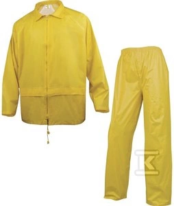 Komplet przeciwdes: Bluza + Spodnie z poliestru powlekanego PVC żółty M o numerze katalogowym EN400JATM w kategorii Zestawy ubrań roboczych, Odzież robocza. Produkt wyprodukowany przez markę DELTA PLUS, seria 400.