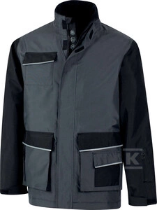 Kurtka nieprzemakalna - płótno oxford 100% poliester z recyklingu membrana TPU 2 warstwy laminowane Ciemnoszary-czarny S o numerze katalogowym  PALMAGRPT w kategorii Odzież robocza>Bluzy, kurtki i spodnie robocze. Produkt wyprodukowany przez markę DELTA PLUS, seria OCHRONA CIAŁA.