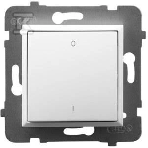 Łącznik dwubiegunowy, biały ARIA o numerze katalogowym  ŁP-11U/M/00 w kategorii Łączniki podtynkowe świecznikowe, Łączniki świecznikowe. Produkt wyprodukowany przez markę OSPEL, seria ARIA.