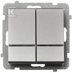 Łącznik dwugrupowy świecznikowy z podświetleniem niebieskim, srebro mat SONATA o numerze katalogowym ŁP-2RS/M/38 w kategorii Łączniki podtynkowe świecznikowe, Łączniki świecznikowe. Produkt wyprodukowany przez markę OSPEL, seria SONATA.