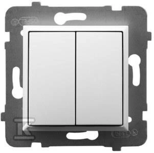 Łącznik dwugrupowy świecznikowy, biały ARIA o numerze katalogowym ŁP-2U/M/00 w kategorii Łączniki podtynkowe świecznikowe, Łączniki świecznikowe. Produkt wyprodukowany przez markę OSPEL, seria ARIA.