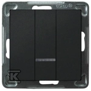 Łącznik potrójny z podświetleniem niebieskim, czarny metalik SONATA o numerze katalogowym ŁP-13RS/M/33 w kategorii Łączniki podtynkowe wielobiegunowe, Łączniki wielobiegunowe. Produkt wyprodukowany przez markę OSPEL, seria SONATA.