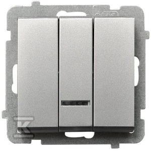 Łącznik potrójny z podświetleniem niebieskim, srebro mat SONATA o numerze katalogowym ŁP-13RS/M/38 w kategorii Łączniki podtynkowe wielobiegunowe, Łączniki wielobiegunowe. Produkt wyprodukowany przez markę OSPEL, seria SONATA.