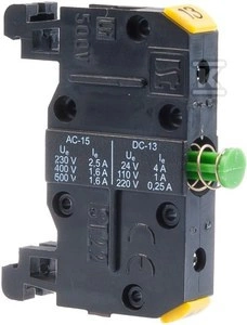 Łącznik z torem zwiernym 10 do montażu na szynie kolor zielony NO do przycisków ST22 o numerze katalogowym ST22\10-1-SZ w kategorii Styki pomocnicze, Sterowanie i zabezpieczenie silników. Produkt wyprodukowany przez markę SPAMEL, seria ST22.