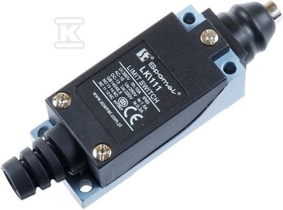 Wyłącznik krańcowy (metal / tworzywo) z popychaczem o numerze katalogowym LK\111 w kategorii Krańcówki, Czujniki mechaniczne. Produkt wyprodukowany przez markę SPAMEL, seria LK.