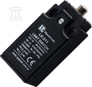 Wyłącznik krańcowy (tworzywo) z popychaczem o numerze katalogowym LK\211 w kategorii Krańcówki, Czujniki mechaniczne. Produkt wyprodukowany przez markę SPAMEL, seria LK.