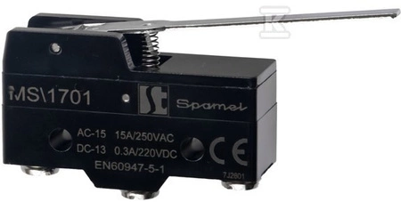 Łącznik miniaturowy dźwignia płaska długa o numerze katalogowym MS\1701 w kategorii Krańcówki, Czujniki mechaniczne. Produkt wyprodukowany przez markę SPAMEL, seria MS.