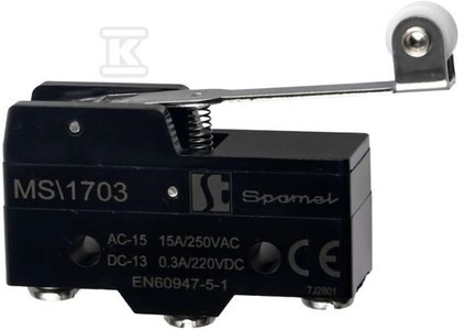 Łącznik miniaturowy dźwignia z rolką długa o numerze katalogowym MS\1703 w kategorii Krańcówki, Czujniki mechaniczne. Produkt wyprodukowany przez markę SPAMEL, seria MS.