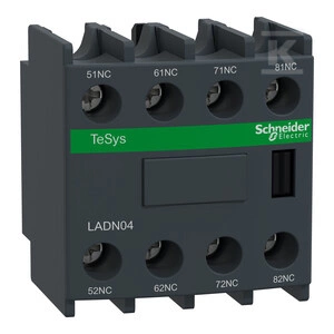 Blok styków pomocniczych wyprzedzających LC1 4NC zaciski skrzynkowe o numerze katalogowym LADN04 w kategorii Styki pomocnicze, Sterowanie i zabezpieczenie silników. Produkt wyprodukowany przez markę SCHNEIDER ELECTRIC.