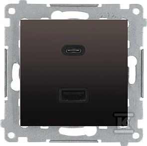 Ładowarka USB podwójna, C+A, brąz mat, metalizowany, maksymalna moc ładowania:30W, SIMON54 o numerze katalogowym DEC2CAQ.01/46 w kategorii Gniazda instalacyjne>Gniazda podtynkowe. Produkt wyprodukowany przez markę KONTAKT-SIMON, seria SIMON 54.