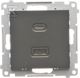 Ładowarka USB podwójna, C+A, 3,1A, 30W, czarny mat, SIMON55 o numerze katalogowym TEC2CAQ.01/149 w kategorii Gniazda instalacyjne>Gniazda podtynkowe. Produkt wyprodukowany przez markę KONTAKT-SIMON, seria SIMON 55.