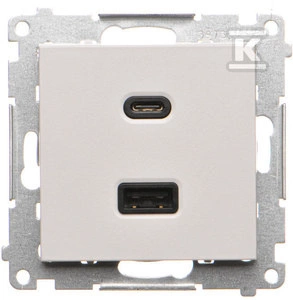 Ładowarka USB podwójna, C+A, 3,1A, 30W, jasnoszary mat, SIMON55 o numerze katalogowym TEC2CAQ.01/114 w kategorii Gniazda instalacyjne>Gniazda podtynkowe. Produkt wyprodukowany przez markę KONTAKT-SIMON, seria SIMON 55.