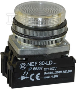 Lampka NEF30LD/24V-230V biała W0-LDU1-NEF30LD B o numerze katalogowym W0-LDU1-NEF30LD B w kategorii Sygnalizacja optyczna lampki, Sygnalizacja optyczna i akustyczna. Produkt wyprodukowany przez markę PROMET, seria NEF30.