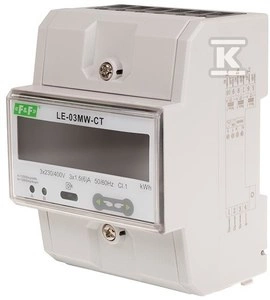 Dwutaryfowy licznik energii elektrycznej, 3-fazowy, 2-kierunkowy z modbus rtu, do pomairu półpośredniego LE-03MW-CT o numerze katalogowym  LE-03MW-CT w kategorii Pozostała aparatura pomiarowa, Aparatura kontrolno-pomiarowa. Produkt wyprodukowany przez markę F&F.