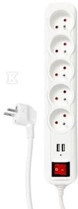 Listwa ochronna z wyłącznikiem, 5 gniazd, 2 x USB, biała, 1,5 m o numerze katalogowym FMP9115U w kategorii Listwy ochronne przenośne, Przedłużacze i rozgałęźniki. Produkt wyprodukowany przez markę DPM.
