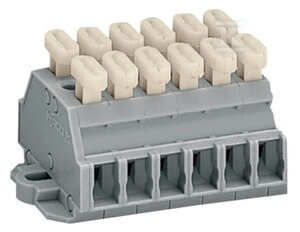 Listwa zaciskowa 2-przewodowa, przyciski po obu stronach, z uchwytami montażowymi, 6-biegunowe do mocowania śrubowego i podobnego typu, otwór montażowy O 3,2 mm, 2,5 mm2, CAGE CLAMP®, 2,50 mm2, szary o numerze katalogowym 261-426/341-000 w kategorii Niesklasyfikowane>Pozostałe. Produkt wyprodukowany przez markę WAGO, seria 261.
