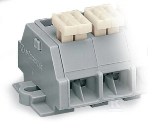 Listwa zaciskowa 4-przewodowa, przyciski po jednej stronie, z uchwytami montażowymi, 2-biegunowe do mocowania śrubowego i podobnego typu, otwór montażowy O 3,2 mm, 2,5 mm2, CAGE CLAMP®, 2,50 mm2, szary o numerze katalogowym 261-202/332-000 w kategorii Niesklasyfikowane>Pozostałe. Produkt wyprodukowany przez markę WAGO, seria 261.