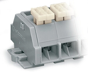 Listwa zaciskowa 4-przewodowa, przyciski po jednej stronie, z uchwytami montażowymi, 5-biegunowe do mocowania śrubowego i podobnego typu, otwór montażowy O 3,2 mm, 2,5 mm2, CAGE CLAMP®, 2,50 mm2, szary o numerze katalogowym 261-205/332-000 w kategorii Niesklasyfikowane>Pozostałe. Produkt wyprodukowany przez markę WAGO, seria 261.