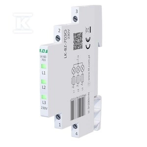 Lampka kontrolna zasilania z zabezpieczeniem LK-BZ-703G 1/3S 3X230V 3xLED ZIELONA o numerze katalogowym LK-BZ-703G w kategorii Aparatura modułowa>Lampki modułowe. Produkt wyprodukowany przez markę F&F, seria LK.