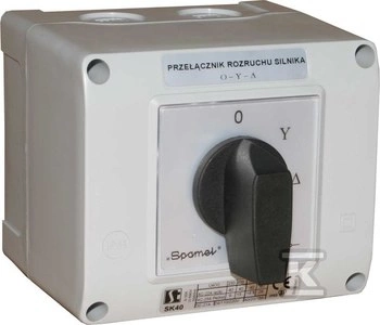 Łącznik Krzywkowy 40A, Przełącznik rozruchowy trójfazowy ze zmianą kierunku obrotów, w obudowie OB14, o numerze katalogowym SK40-5.8538\OB14 w kategorii Wyłączniki i rozłączniki obrotowe, Wyłączniki, rozłączniki. Produkt wyprodukowany przez markę SPAMEL.