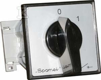 Łącznik Krzywkowy 25A, Rozłącznik 0-1 (4 - biegunowy), w obudowie OB2 z czołem zamykanym żółto/czerwonym o numerze katalogowym  ŁK25-2.8210\OB2ZC w kategorii Wyłączniki i rozłączniki obrotowe, Wyłączniki, rozłączniki. Produkt wyprodukowany przez markę SPAMEL.