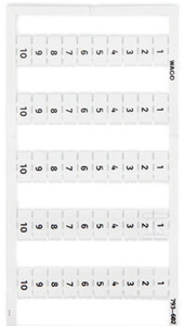 Mata oznacznikowa WMB, jako karta, z nadrukiem, 1 ... 10 (10x), nierozciągalne, nadruk pionowo, do montażu zatrzaskowego, biały o numerze katalogowym 793-602 w kategorii Niesklasyfikowane>Pozostałe. Produkt wyprodukowany przez markę WAGO, seria 793.