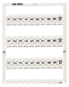 Mata oznacznikowa WMB, jako karta, z nadrukiem, 1 ... 10 (10x), z możliwością rozciągnięcia z 5 mm do 5,2 mm, nadruk pionowo, do montażu zatrzaskowego, biały o numerze katalogowym 793-5602 w kategorii Niesklasyfikowane>Pozostałe. Produkt wyprodukowany przez markę WAGO, seria 793.
