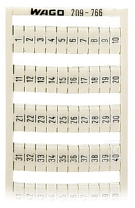 Mata oznacznikowa WSB, jako karta, z nadrukiem, 1 ... 50 (2x), nierozciągalne, nadruk pionowo, do montażu zatrzaskowego, biały o numerze katalogowym 209-766 w kategorii Niesklasyfikowane>Pozostałe. Produkt wyprodukowany przez markę WAGO, seria 209.