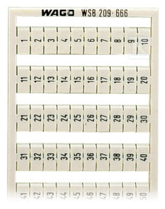 Mata oznacznikowa WSB, jako karta, z nadrukiem, 1 ... 50 (2x), nierozciągalne, nadruk pionowo, do montażu zatrzaskowego, biały o numerze katalogowym 209-666 w kategorii Niesklasyfikowane>Pozostałe. Produkt wyprodukowany przez markę WAGO, seria 209.
