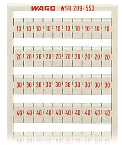 Mata oznacznikowa WSB, jako karta, z nadrukiem, 10, 20 ... 50 (po 20x), nierozciągalne, nadruk poziomo, do montażu zatrzaskowego, biały o numerze katalogowym 209-553 w kategorii Niesklasyfikowane>Pozostałe. Produkt wyprodukowany przez markę WAGO, seria 209.