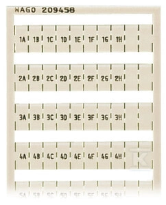 Mata oznacznikowa WSB, jako karta, z nadrukiem, 1A, 1B, ..., 1G, 1H, ... do 10A, 10B, ..., 10G, 10H, , , (po 1x), nierozciągalne, nadruk poziomo, do montażu zatrzaskowego, biały o numerze katalogowym 209-458 w kategorii Niesklasyfikowane>Pozostałe. Produkt wyprodukowany przez markę WAGO, seria 209.