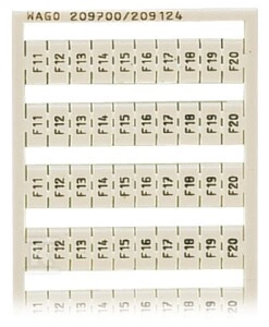 Mata oznacznikowa WSB, jako karta, z nadrukiem, F11, ..., F20 (10x), nierozciągalne, nadruk pionowo, do montażu zatrzaskowego, biały o numerze katalogowym 209-700/209-124 w kategorii Niesklasyfikowane>Pozostałe. Produkt wyprodukowany przez markę WAGO, seria 209.