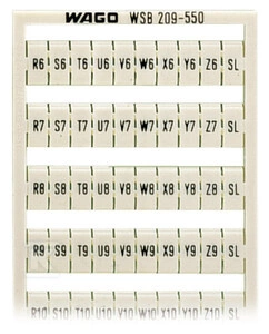 Mata oznacznikowa WSB, jako karta, z nadrukiem, R6, S6, T6, ..., Y6, Z6, SL do R10, S10, T10, ..., Y10, Z10, SL (każdy 2x), nierozciągalne, nadruk poziomo, do montażu zatrzaskowego, biały o numerze katalogowym 209-550 w kategorii Niesklasyfikowane>Pozostałe. Produkt wyprodukowany przez markę WAGO, seria 209.