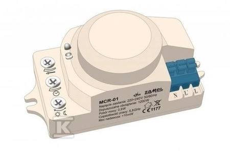 Mikrofalowy czujnik ruchu Typ: MCR-01 o numerze katalogowym EXT10000049 w kategorii Czujniki i sondy, Aparatura sterująca. Produkt wyprodukowany przez markę ZAMEL, seria EXTA.