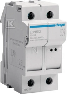 Podstawa bezpiecznikowa modułowa 1P+N do wkładki bezpiecznikowej cylindrycznej L38 10x38 mm, 32A 690VAC o numerze katalogowym LSN512 w kategorii Pozostałe, Niesklasyfikowane..