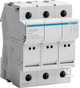 Podstawa bezpiecznikowa modułowa 3P do wkładki bezpiecznikowej cylindrycznej L38 10x38 mm, 32A 690VAC o numerze katalogowym LSN503 w kategorii Pozostałe, Niesklasyfikowane..