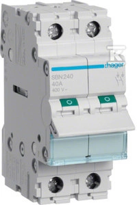 Modułowy rozłącznik izolacyjny 2P 40A 400VAC o numerze katalogowym SBN240 w kategorii Wyłączniki i rozłączniki modułowe, Wyłączniki, rozłączniki. Produkt wyprodukowany przez markę HAGER.