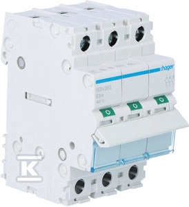 Modułowy rozłącznik izolacyjny 3P 63A 400VAC o numerze katalogowym SBN363 w kategorii Wyłączniki i rozłączniki modułowe, Wyłączniki, rozłączniki. Produkt wyprodukowany przez markę HAGER.