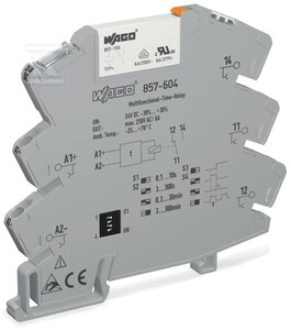 Moduł przekaźnika czasowego, znamionowe napięcie wejściowe 24 V DC, maksymalny prąd długotrwały 6 A, kolejnictwo, wielofunkcyjny, sygnalizacja statusu żółta, szerokość 6 mm, szary o numerze katalogowym 857-604 w kategorii Niesklasyfikowane>Pozostałe. Produkt wyprodukowany przez markę WAGO, seria 857.